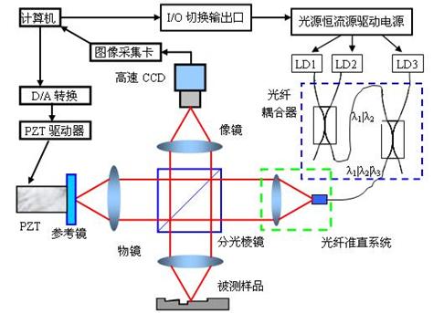 图1 基于波长轮换与相移扫描相结合的表面形貌干涉测量系统原理图