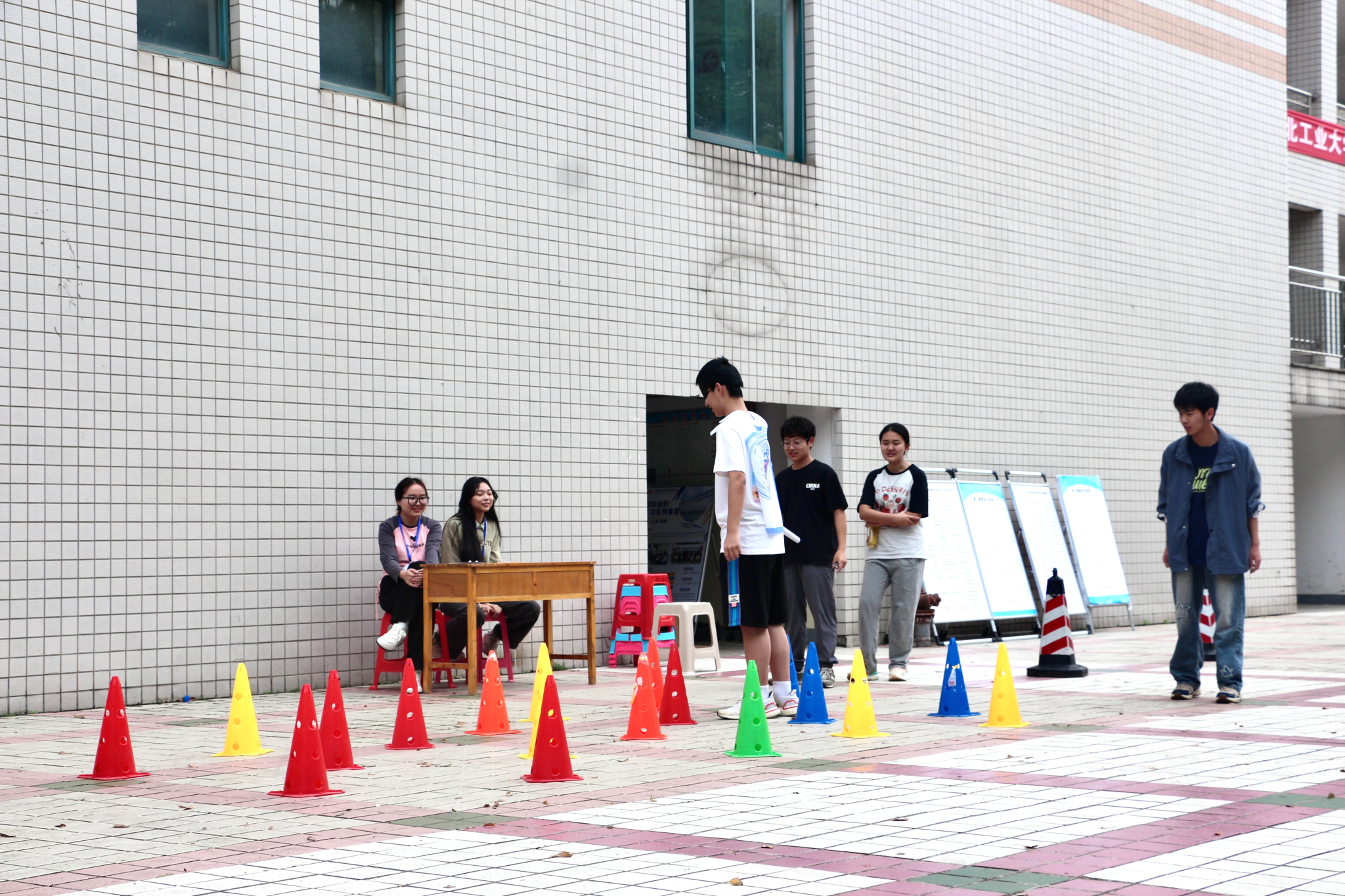 本次“与心相约,定向越野”趣味心理素质拓展活动在项目设置上采取了动静结合的形式,同时也将团队协作和个人挑战有机融合到一起。在“心灵魔方”环节,同学们现场将打乱的魔方重新拼合起来,魔方的每一个面都以不同的颜色代表了人的不同情绪表征,大家在拼合完成后可以结合自己近一周的情绪情况,进行自评打分,然后结合情绪魔方的说明进行参照,以把握自身的情绪特点和气质类型;在“心有灵犀”环节,参与拓展的同学们在工作人员的安排下分成不同小组,每组成员都需要相互协作,密切配合,每组一名挑战者佩戴眼罩,在本组同伴的语音提示下,灵活顺利地绕过摆在地面上的路障,顺利通过关卡抵达出口,挑战活动中不仅考验了大家的肢体协调能力,也提升了同学们的团队合作和团队互信意识。