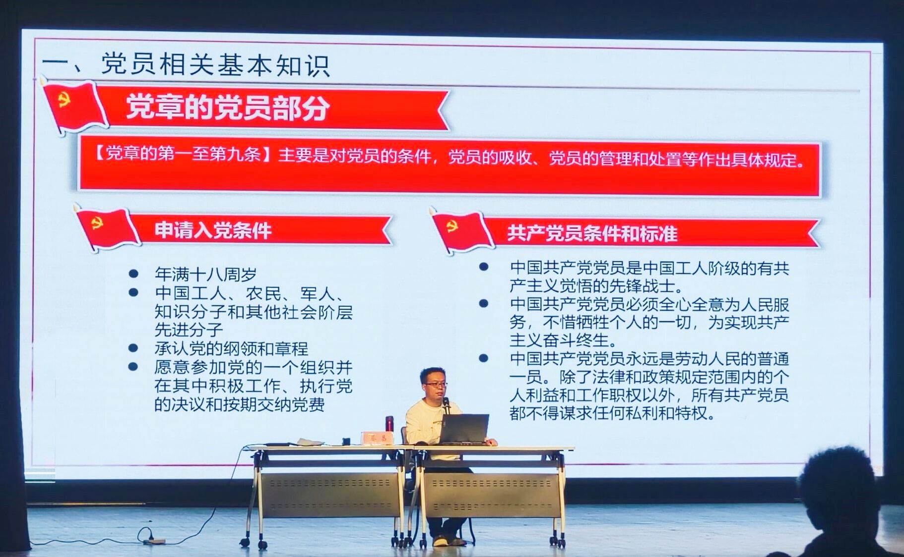 蔡昌主要围绕“党员的相关基本知识”“党员发展的基本流程”“合格党员成长之路”三个部分进行授课通过学习党章党员的相关基本知识,号召学生深刻理解党员身份,并详细阐述了相关纲领性文件,强调无私奉献精神应当作为党员的责任观和使命感。同时,学生们系统地介绍了入党的基本流程和培养教育还特别教育党员要加强政治理论学习,在思想学习工作生活等方面发挥先锋模范作用。最后勉励所有党员要始终践行为人民服务的根本宗旨,积极做老师的信息员,无私地为同学服务,拒绝躺平摆烂,服从组织安排,永远听党话,跟党走。