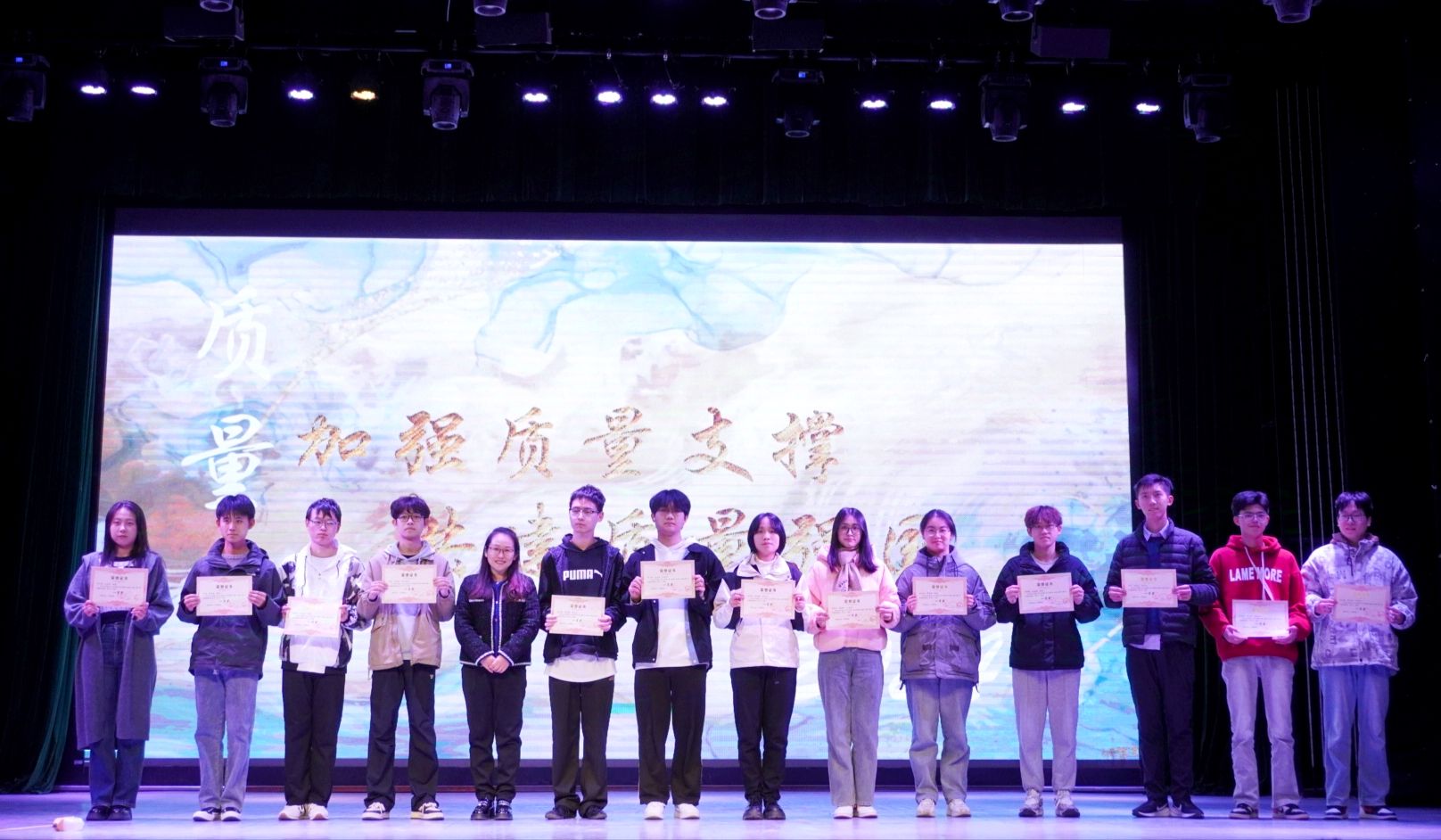 机械工程学院班子成员和与会嘉宾相继为学生颁发“质量月”活动各单项奖和“质量杯”机器人大赛奖项。