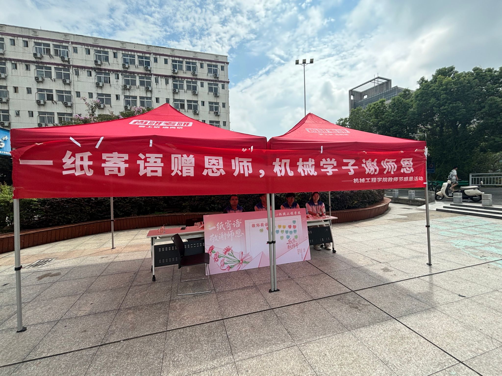 东区食堂前的广场上,同学们精心设计制作了教师节“一纸寄语·敬颂师恩”主题展板,鼓励机械学子将教师寄语写在便利贴上,用简单质朴的话语表达对老师们的深深敬意,填满了一面满载心意的“感恩墙”。此外,许多学子还以电子书信的方式,向恩师送上节日祝福,并表达了对学校全体教师的诚挚祝福与感激之情。