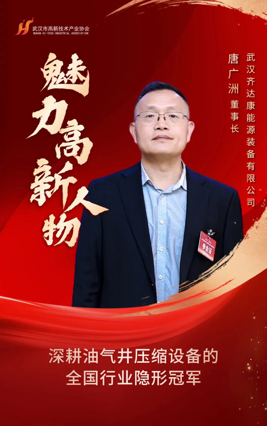 2006年,唐广洲率领团队凭借自主研发的“液压活塞压缩机”项目,在武汉市创业大赛中大放异彩。次年,他拿出50万元积蓄,创立武汉齐达康环保科技有限公司(后更名为武汉齐达康能源装备有限公司),专注于天然气压缩机研发。创业初期,国产设备面临严重的市场信任危机,唐广洲带领团队扎根油田一线,以“贴身服务”与免费试用的诚意,逐步赢得客户信赖。