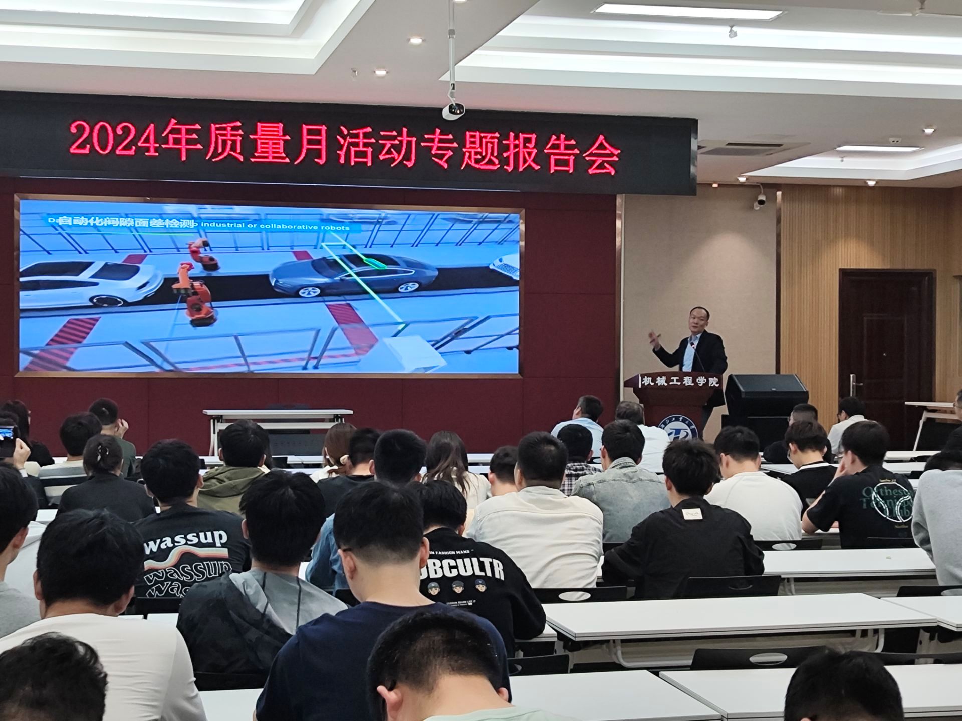 11月15日晚,2024年湖北工业大学质量月第一场学术专题讲座在机械楼一楼报告厅成功举行。本次报告由海克斯康制造智能技术(青岛)有限公司解决方案中心运营总监陈发波主讲,主题为数字化智能检测关键技术及应用案例。机械工程学院副院长翟中生、仪器科学与质量工程系刘文超、范宜艳、刘达等教师和测控专业学生参加报告会。