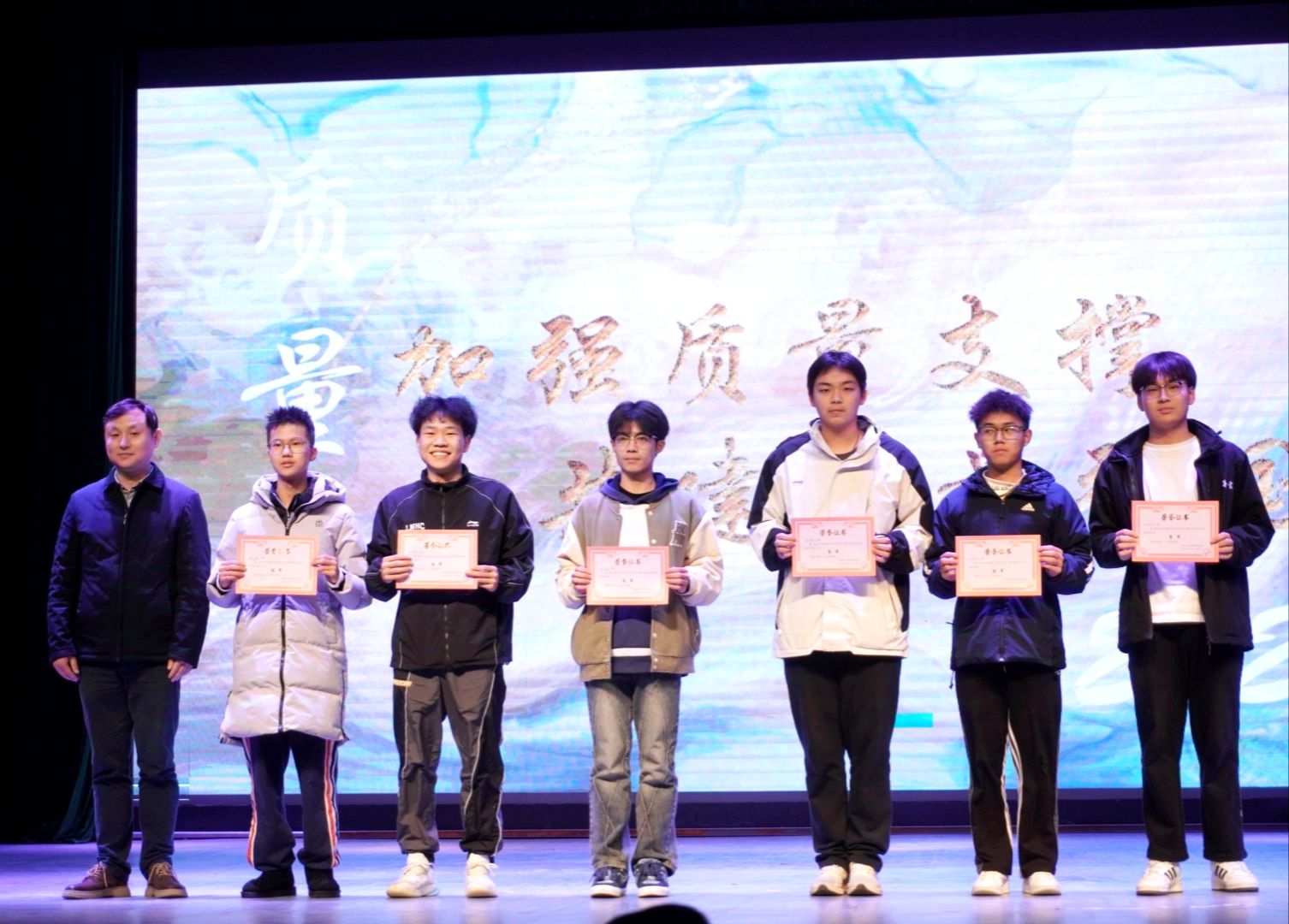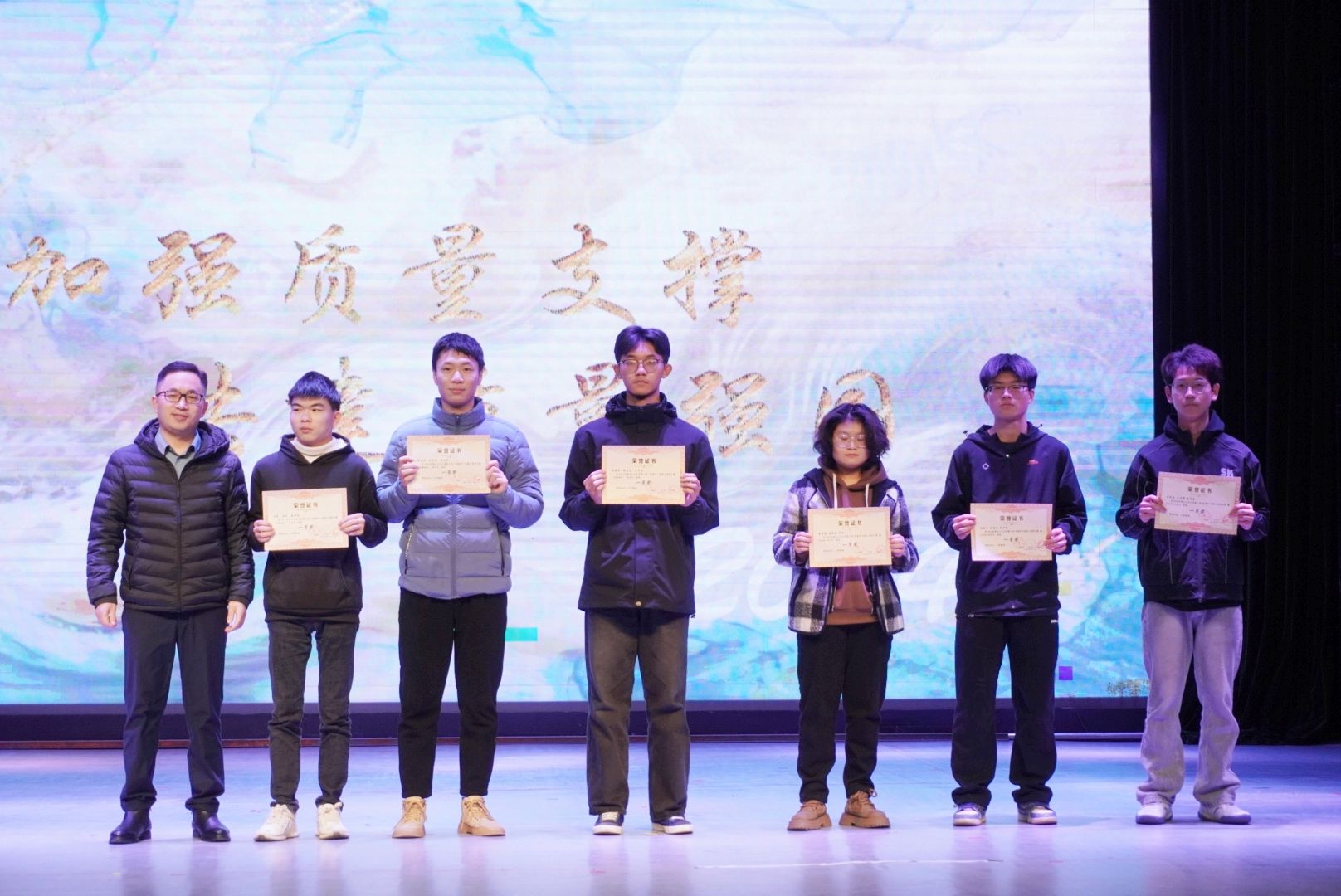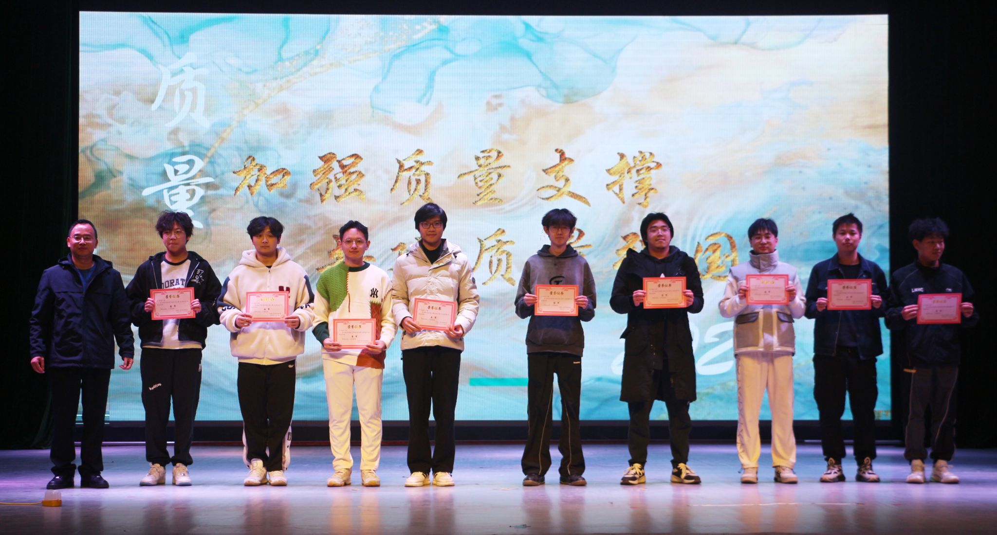 机械工程学院班子成员和与会嘉宾相继为学生颁发“质量月”活动各单项奖和“质量杯”机器人大赛奖项。