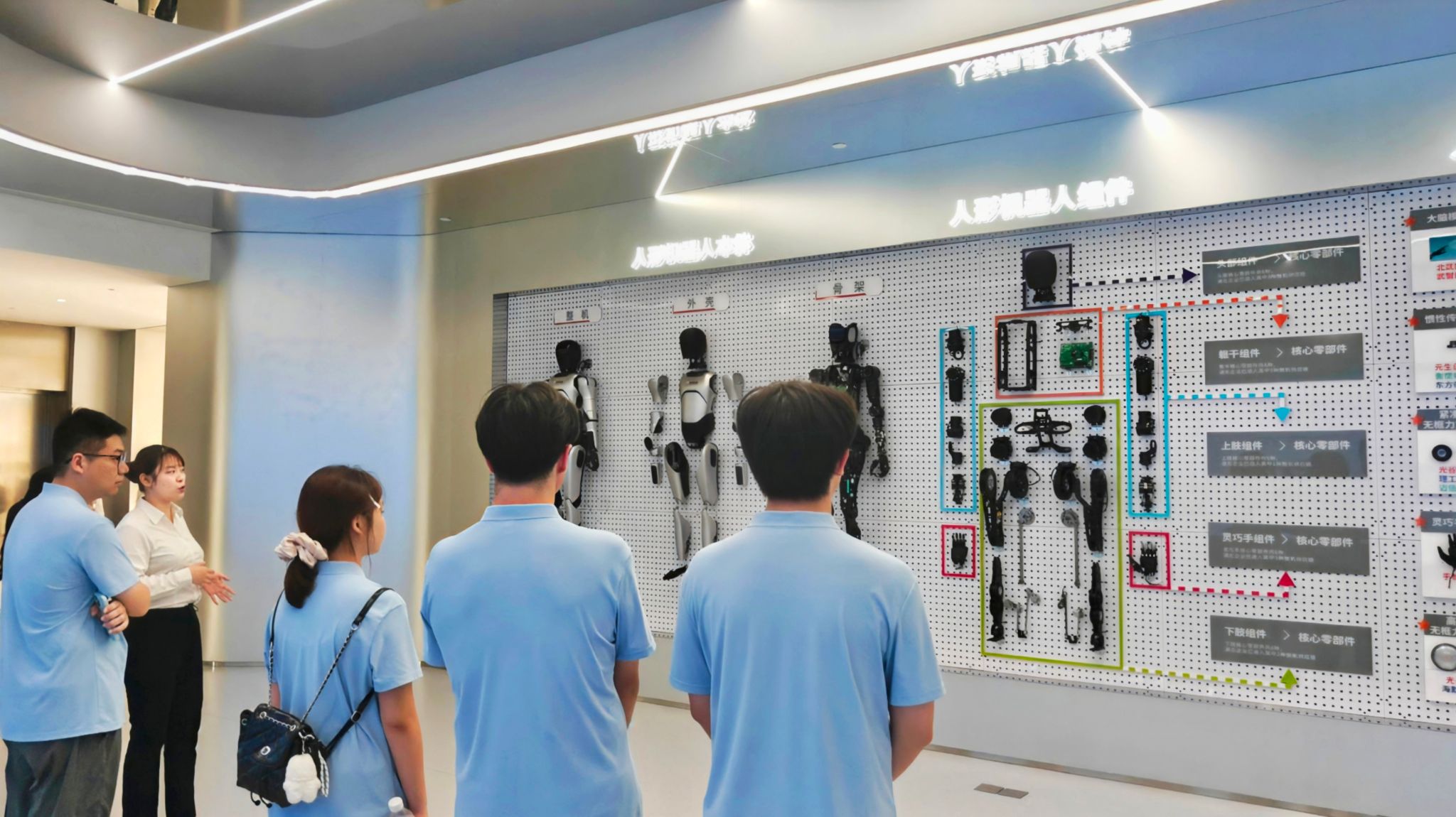 在湖北人形机器人创新中心,队员们实地观摩人形机器人应用场景,深化对湖北具身智能领域的认知。中心负责人介绍,随着人形机器人结构设计优化,它们对复杂环境的适应性与多样化的需求的满足能力将持续提升。针对机器人作业中类人化顺滑动作难以实现的问题,负责人与实践队员共同探讨突破路径,启发了队员们对机器人应用潜力的思考。