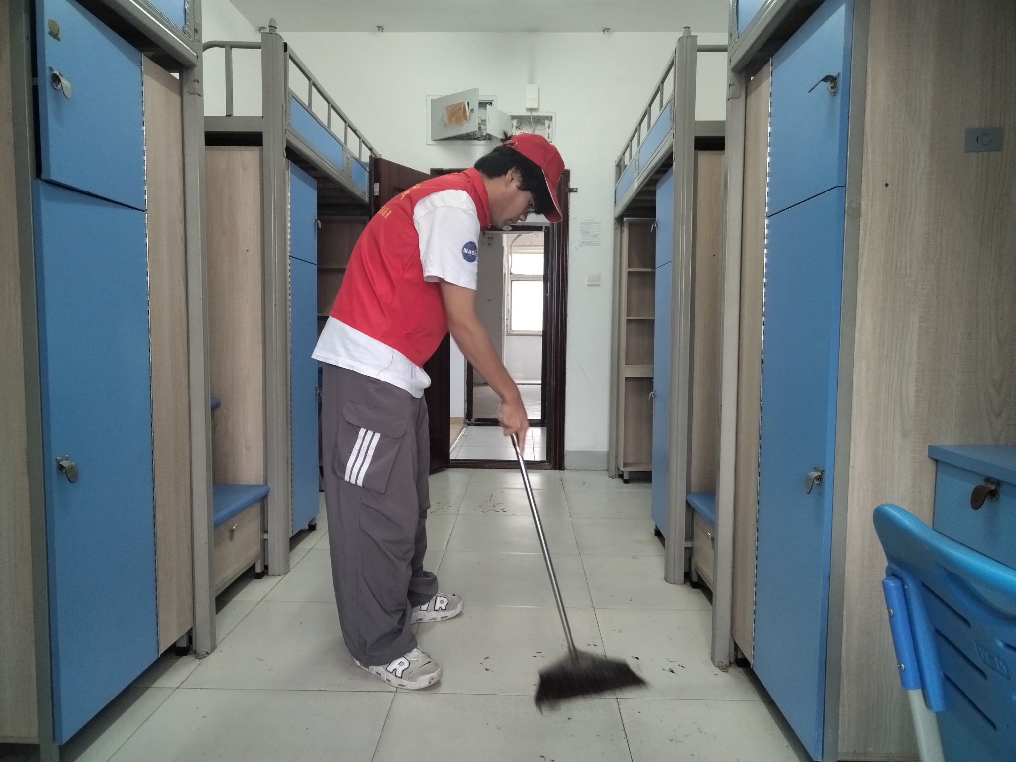 6 月 13 日,在搬迁安置启动前,机械学院各学生党支部已提前进入 “战斗状态”。为给材化学院同学打造干净、安全的临时居住环境,学院实行 “片区包干、责任到人” 机制 —— 每个党支部明确具体房间后,党员志愿者利用课后、周末时间,逐间开展 “地毯式” 排查:小到书桌衣柜是否可以使用、插座是否通电,大到空调制冷、门窗有无损坏情况,均逐一记录、及时协调维修;针对卫生死角,志愿者们手持扫帚、抹布反复清理,确保每间宿舍都能 “拎包入住”。“看到楼道里、宿舍里干干净净的,特别感动!” 一位入住的材化学院学生说道。