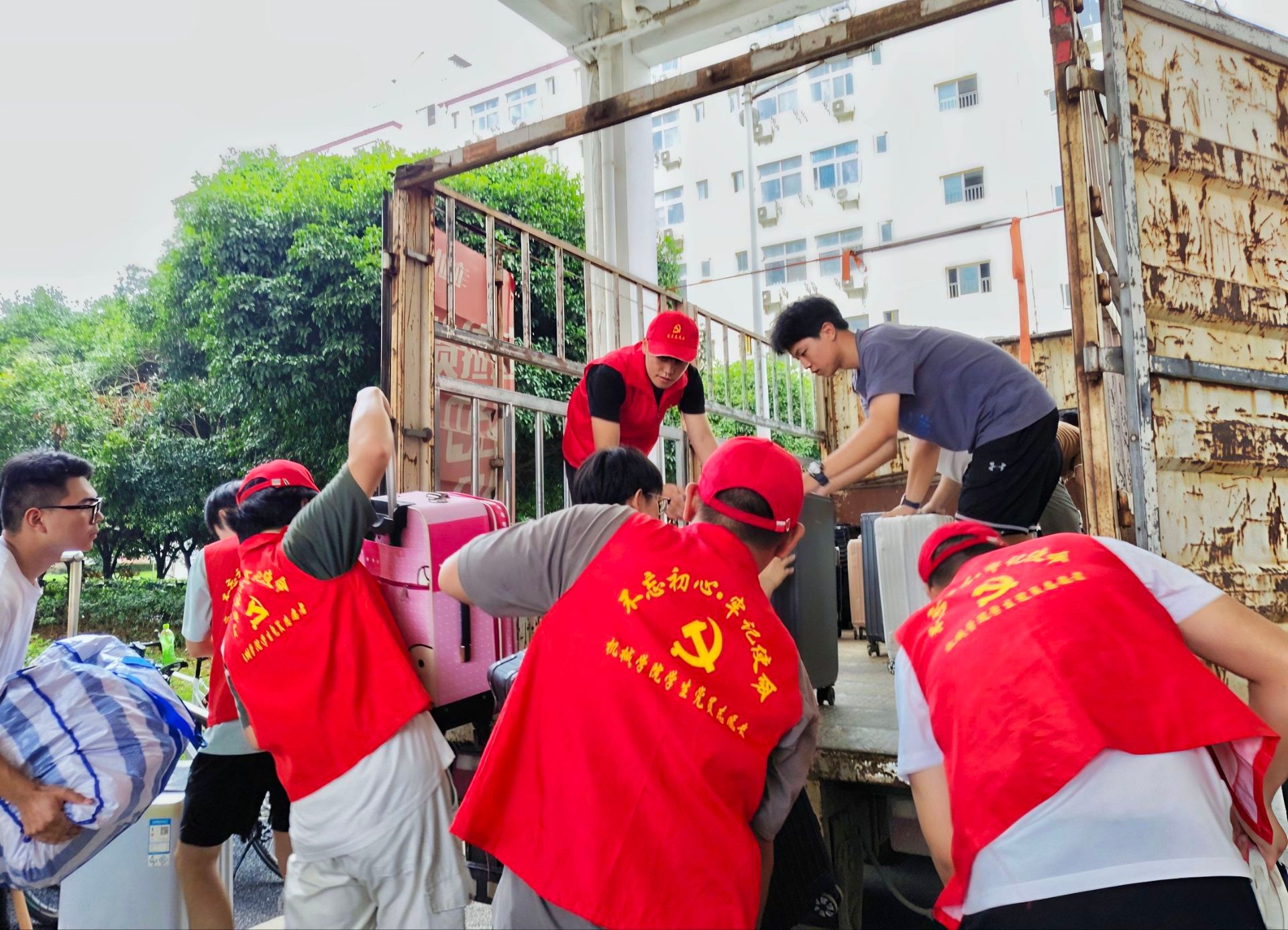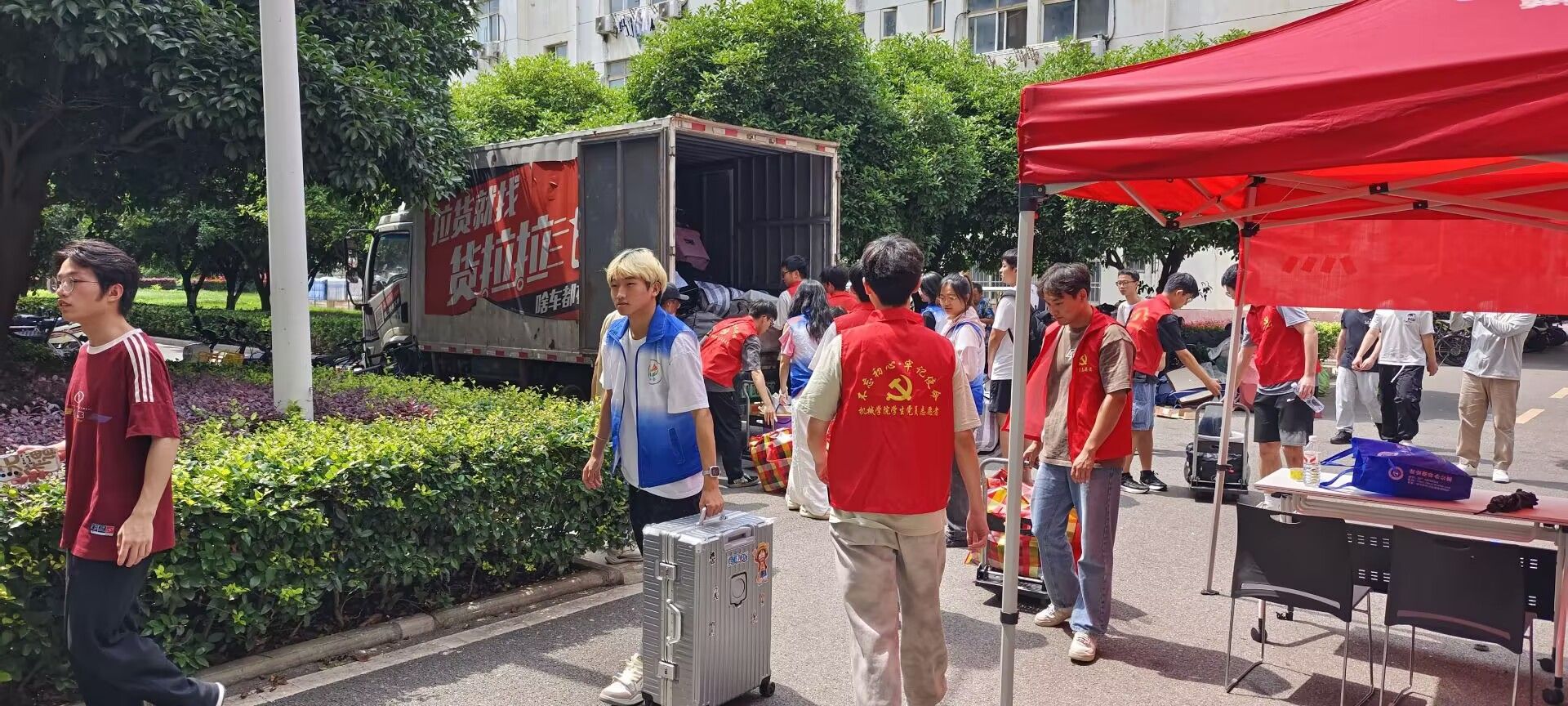 “行李重不重?这边有推车,我帮你送上去!”“新宿舍的空调已经检查过了,你放心入住!”6 月至 9 月,围绕北区 10-15 栋宿舍维修改造工程,材化学院部分学生需完成临时搬迁与回迁工作。机械学院主动扛起责任,组建党员志愿服务队,以“全流程跟进、零距离服务” 的姿态,为两次搬迁保驾护航,让暖心服务贯穿始终。
