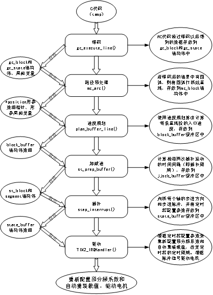数控插补系统能实现多个功能模块,包括主任务模块、译码模块、路径预处理模块、速度规划模块、加减速模块、插补模块和驱动模块等。
